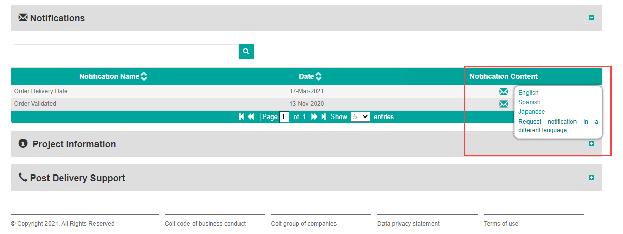 Todas las notificaciones están disponibles para su descarga desde el Portal de Gestión de Pedidos (incluso si usted no era el destinatario original)